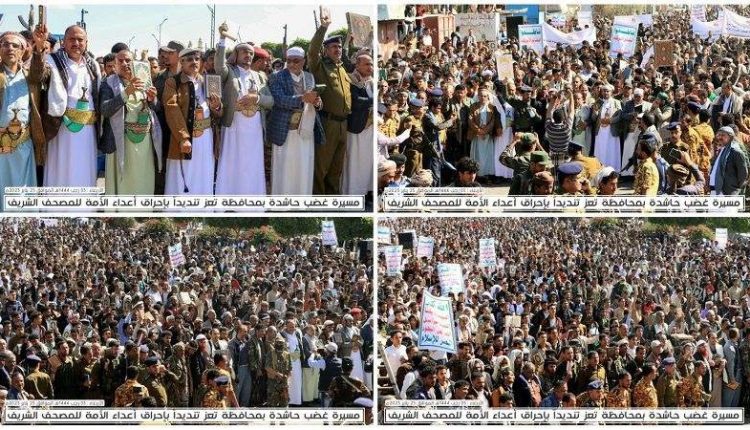 احتشد الآلاف من أبناء محافظة تعز اليوم الأربعاء، في مسيرة ووقفة حاشدة تحت شعار “مسيرة غضب شعب الإيمان ضد من أحرقوا القرآن”.