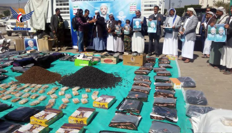 واحتوت القافلة على مواد غذائية متنوعة وزبيب وملابس شتوية ومواشي دعماً لأبطال الجيش المرابطين في جبهات العزة والكرامة دفاعاً عن الوطن، تحت شعار الإيمان يمان”.