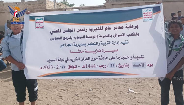 الى ذلك شهدت مديرية الجراحي مسيرة طلابية للتنديد بجرائم حرق نسخ من المصحف الشريف في السويد وهولندا والدنمارك.