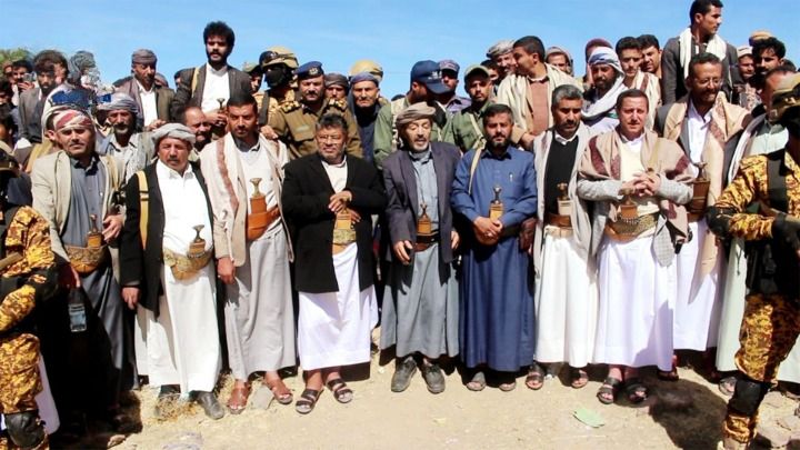 وأضاف: اليوم نقول للعدو، نحن هنا اليوم نتعافى ونتآخى لنوحّد صفنا أكثر، وما رأيته في الماضي هو الشيء القليل من أبناء الشعب اليمني أصحاب البأس والقوّة والنخوة والشهامة، وبإذن الله تعالى بعد كل هذه المواقف ستجد بأننا أكثر قوةً وأكثر تماسكاً وأكثر اهتماماً في مواجهة اعتداءاتك وعدوانك وإرهابك لبلدنا.