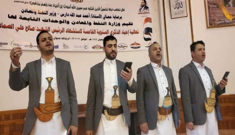 نظمت وزارة النفط والمعادن والوحدات التابعة لها، اليوم الثلاثاء، فعالية ثقافية بالذكرى السنوية الخامسة للرئيس الشهيد صالح الصماد.