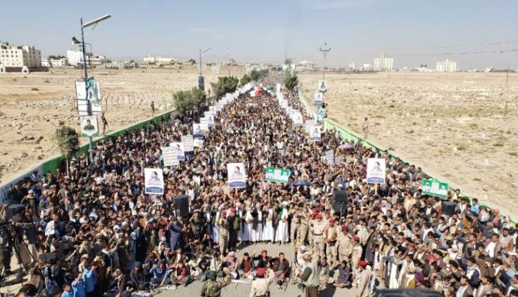 مسيرة جماهيرية حاشدة في صعدة وفاءً للرئيس الشهيد الصماد وتضامناً مع فلسطين وتحذيراً للعدوان