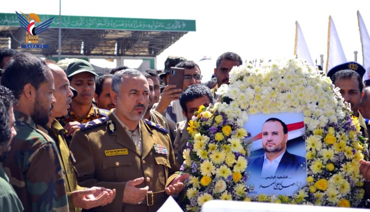 وضع وزير الداخلية اللواء عبدالكريم أمير الدين الحوثي اليوم إكليلاً من الزهور على ضريح الرئيس الشهيد صالح علي الصماد ورفاقه بميدان السبعين.