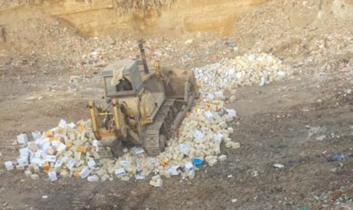 أتلف مكتب الصحة العامة في أمانة العاصمة، اليوم، ثمانية أطنان ونصف من الأدوية منتهية الصلاحية وتالفة.