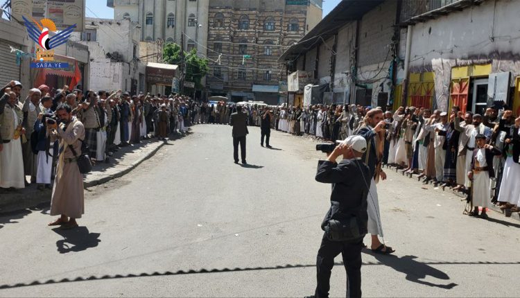 نظم أبناء وقيادة مديرية الثورة في أمانة العاصمة، اليوم، وقفة حاشدة بمناسبة اليوم الوطني للصمود والتأكيد على مواصلة الثبات في مواجهة العدوان والحصار.