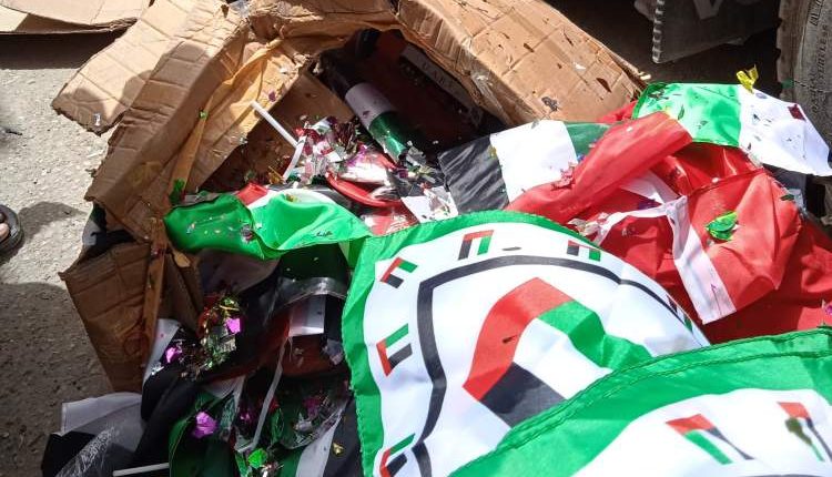 وقال الناطق الرسمي باسم لجنة الإعتصام السلمي لأبناء المهرة علي مبارك محامد ، في تدوينة على (تويتر): ” احتجاز شاحنة تحمل أعلاماً وملصقات لدولة الإمارات في منفذ شحن بالتزامن مع وصول قيادات الانتقالي الموالية لها إلى عدن وشبوة والمهرة”.