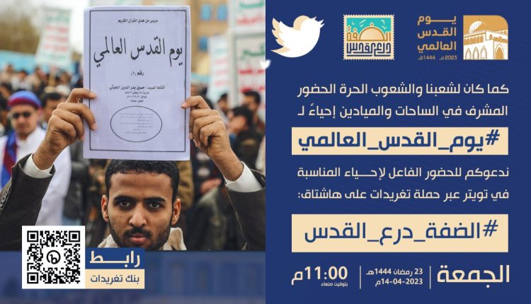 تنظلق في الساعة الحادية عشرة من مساء اليوم حملة تغريدات على موقع التواصل الاجتماعي تويتر إحياء ليوم القدس العالمي.