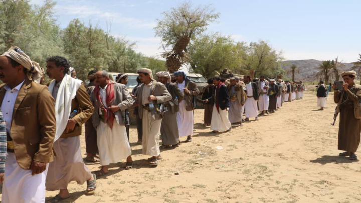 سيّر أبناء العزلة الشرقية في مديرية سحار بمحافظة صعدة، اليوم، قافلة وزيارة عيدية لأبطال الجيش المرابطين في جبهة نجران.