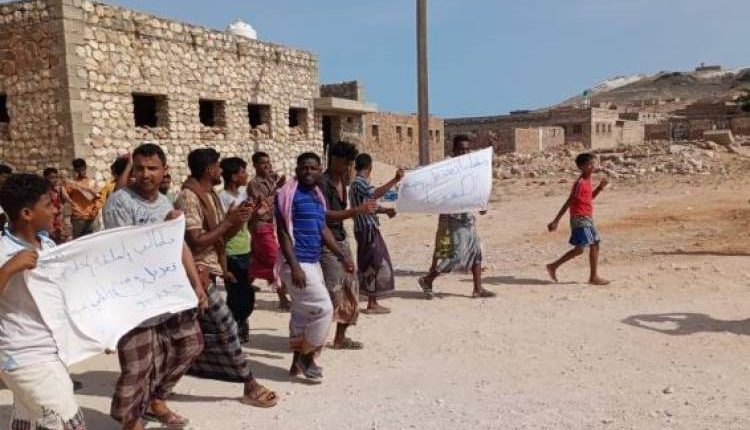 تظاهر أهالي مديرية قلنسية في محافظة أرخبيل سقطرى ضد تردي الخدمات واحتكار شركة طاقة إماراتية بالتيار الكهربائي .