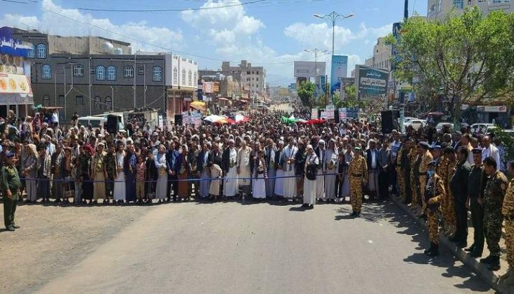 مسيرة جماهيرية حاشدة بمفرق ماوية محافظة تعز تضامناً مع الشعب الفلسطيني