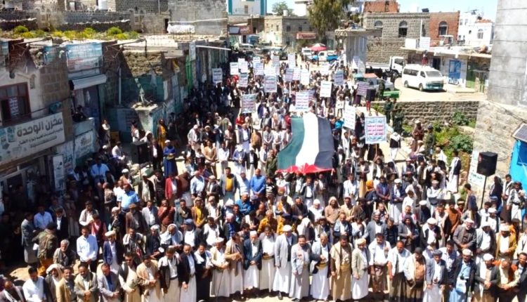 مسيرة جماهيرية حاشدة في ريمة تضامناً مع الشعب الفلسطيني وتنديدا بجرائم العدو الصهيوني والصمت العربي