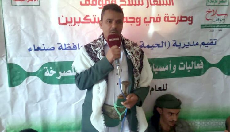 وفي الأمسية بعزلة بني السياغ ، بحضور قائد محور سرايا القدس العميد خالد الكينعي، أكد مدير المديرية محمد البشيري ، أن مشروع الصرخة الذي أطلقه الشهيد القائد السيد حسين بدر الدين الحوثي سلام الله عليه ، يمثل حرباً نفسية ، ضد الطغاة المستكبرين ، وعلى رأسهم أمريكا وإسرائيل.