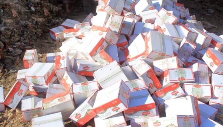وأوضحت الهيئة في بلاغ، أنه ضبطت في فرع الأمانة ومحافظة صنعاء 250 كرتوناً من لب الطماطم و25 كرتون طحينية مخالفة للمواصفات بسبب وجود مواد مغلظة النشا وألوان اصطناعية غير مسموح باستخدامها في المنتج وارتفاع في نسبة الاعفان.