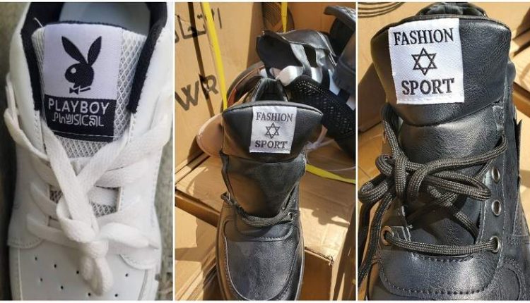 ضبط كمية من الأحذية الشبابية والرياضية عليها النجمة الصهيونية وشعارات مشبوهة (تفاصيل+فيديو)
