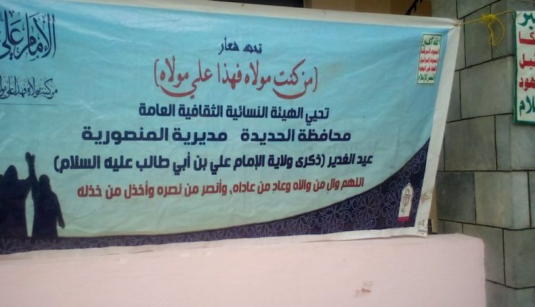 دشنت الهيئة النسائية في مديرية المنصورية بمحافظة الحديدة، اليوم، فعاليات إحياء ذكرى ولاية الإمام علي – عليه السلام.