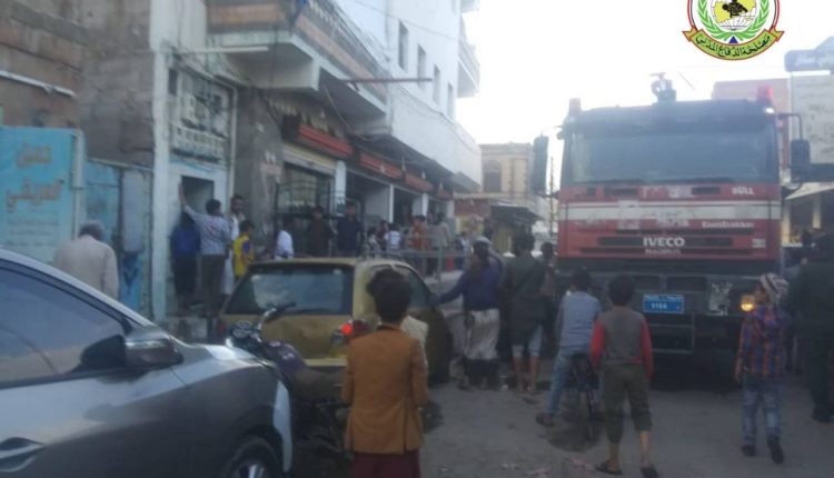 اندلع حريق هائل في منزل يحوي مخزن أخشاب في مديرية الصافية بالعاصمة صنعاء .
