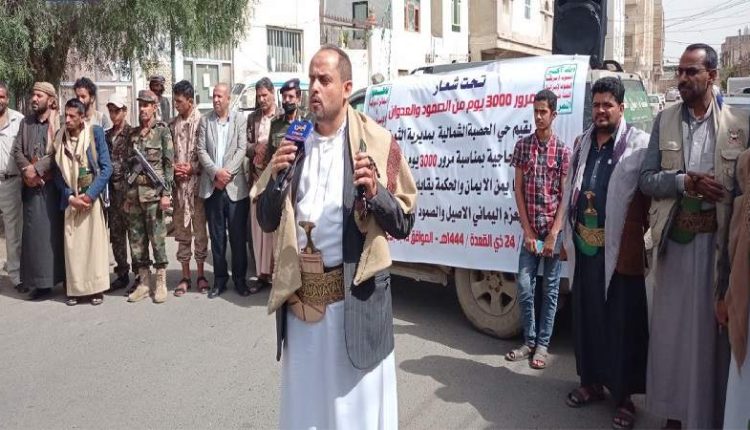 وقفات بمديرية الثورة في أمانة العاصمة بمرور ثلاثة آلاف يوم من العدوان