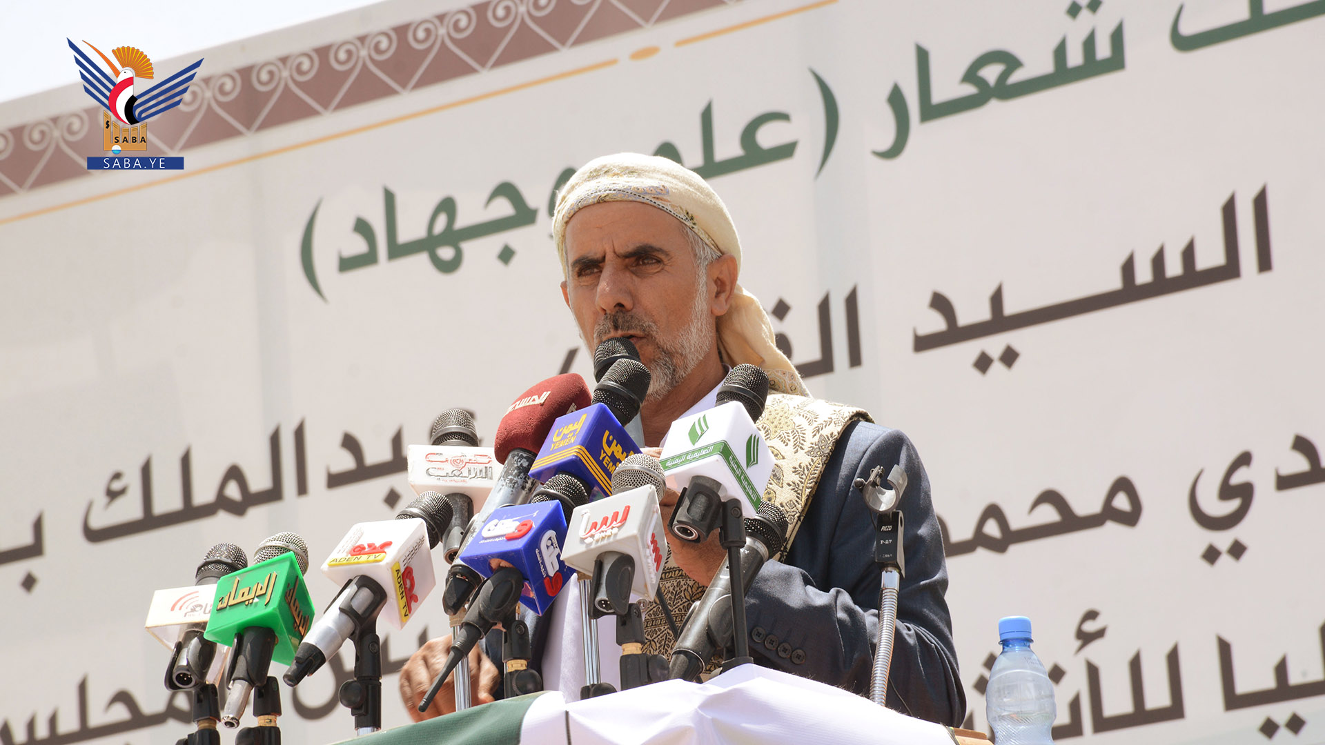 وتطرق إلى الاعتداءات والجرائم التي ارتكبها النظام السعودي بحق الحجاج اليمنيين وذبحهم وقتلهم والغدر بهم ومجازره بحق الشعب اليمني والتي لن ينساها أبناء اليمن .. لافتاً إلى أنه حان الوقت اليوم للأخذ بثأر جرائم النظام السعودي العميل من كل أبناء الأمة الذين أساء لهم وساهم في تدمير بلدانهم في العراق وسوريا وليبيا والسودان وأفغانستان والصومال واليمن ولبنان وفلسطين.