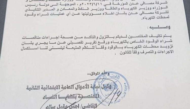 ووجهت محكمة الأموال العامة في عدن بتشكيل لجنة تحقيق خاصة بشراء وقود الكهرباء.