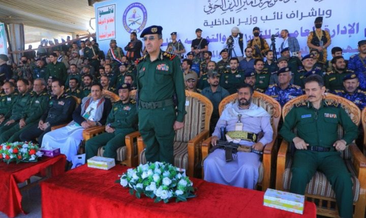 وأفاد بأن الدولة اليمنية يحكمها الدستور والقانون ومؤسساتها ومنها وزارة الداخلية، ما يجسد مفهوم الأمن لكم وليس عليكم .. والشرطة في خدمة الشعب، مؤكدا أن المؤسستين العسكرية والأمنية، ستبقيان صمام الأمان، والصخرة التي تتحطم عليها مؤامرات العدوان.