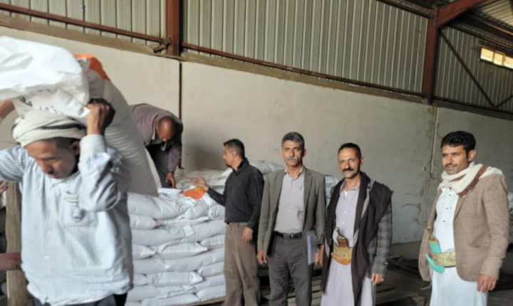 تسليم 8 أطنان من بذور القمح المحسن لمديرية الرضمة في إب