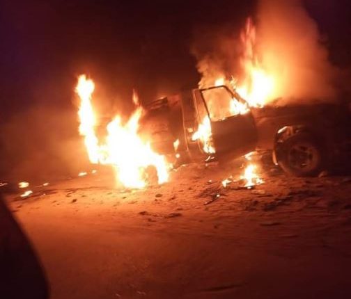 وأضافت أن الانفجار أدى إلى تدمير الطقم واشتعال النيران فيه ، وسط أنباء عن سقوط جرحى .