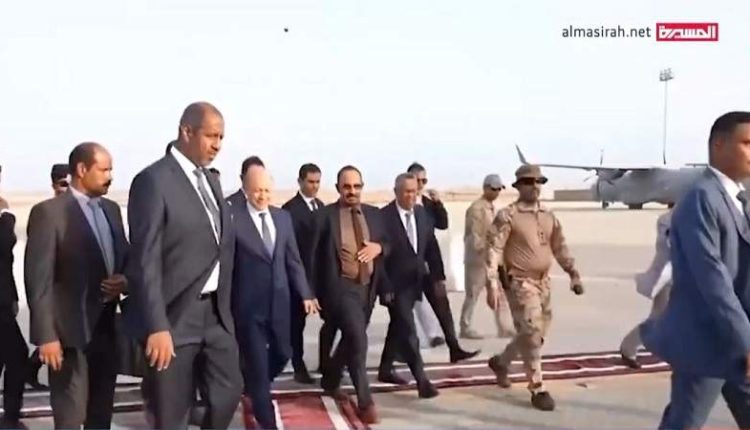 وفدٌ سعوديٌ يحط في المكلا بحضرموت، يرافقه صورياً المرتزق رشاد العليمي.