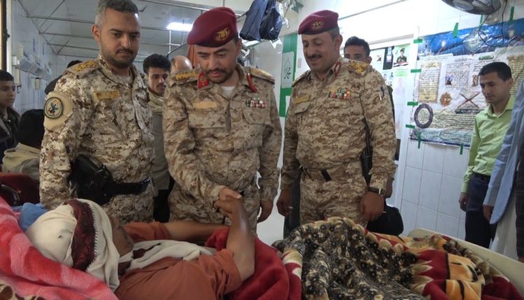 قيادات عسكرية تتفقد جرحى الجيش واللجان في مستشفى الثورة بإب