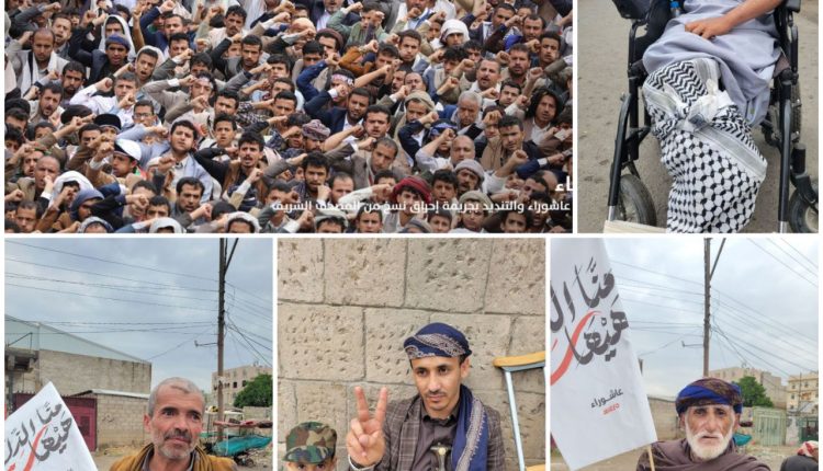 في مسيرة عاشوراء بصنعاء يقف المجاهد الجريح حسين علي عبد الله، مبتورة قَدَماه، وهو على كرسي متحَرّك ومعه الكثير من الجرحى والمعاقين المشاركين في المسيرة الحاشدة، فهو لم يتخاذل أَو يقعد، بل قدم إلى ساحة المسيرة في شارع المطار بصنعاء ليجدد ولاءَه وحبَّه واتِّباعه لنهج الحسين -عليه السلام- ويَفيَ مع الله ببيعته التي قدَّم منها قدَمَيه في جبهة البقع على الحدود مع العدوّ السعوديّ المجرم، على أرض كربلائية يمانية هزت العالم، بمظلوميتها وصمودها.