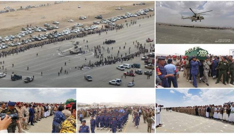 في موكب جنائزي مهيب.. صعدة تودع قائد القوات الجوية الشهيد اللواء أحمد الحمزي