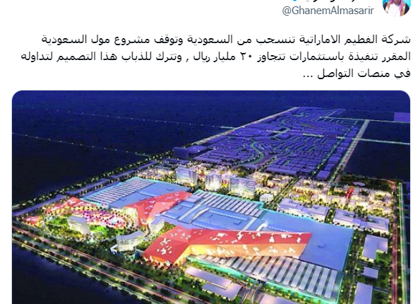 وأكد الرئيس التنفيذ لشركة ماجد فطيم، إحدى الشركات الإمارات المتخصصة بالمولات ، قرارهم وقف أحد مشاريع الشركة في السعودية، نافيا في الوقت ذاته تسريبات سعودية حول خلافات داخل الشركة.