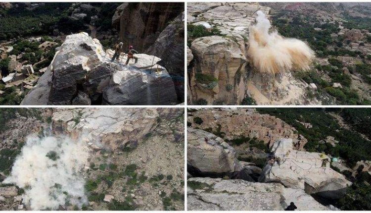 المحويت .. إنجاز 80% من إزالة الصخور المهدَدَة بالانهيار في الأهجر