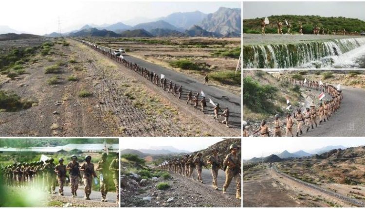 شاهد .. 1000 مقاتل في مسير عسكري مهيب مسافة 100 كم