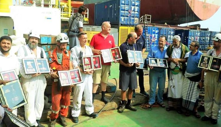 السلطة المحلية بالحديدة تكرم طاقم تأمين وإنقاذ السفينة صافر
