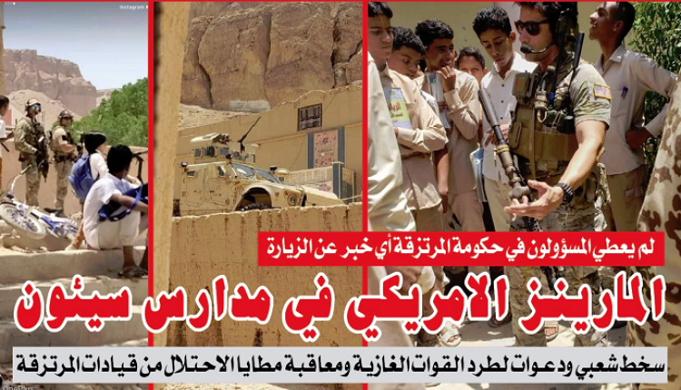 وأفادت مصادر إعلامية ” أنهم تفاجأوا في ثانوية الغرفة بسيئون، اليوم، بحضور مسؤول أمريكي يرافقه جنود من المارينز الأمريكي وسعوديين وبعض المدرعات زاروا ثانوية البنين ثم ثانوية البنات المجاورة، ودخلوا الصف الثالث الثانوي علمي والتقوا بالإدارة والطلاب، ثم انتقلوا إلى ثانوية البنات والتقوا بالإدارة.