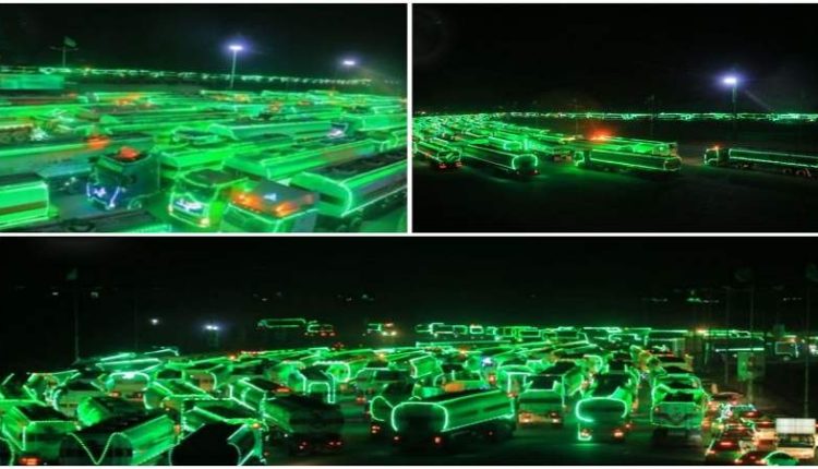 وصلت إلى مدينة الحديدة، مسيرة ضوئية تضم 450 قاطرة مشتقات نفطية، تتلألأ بأنوار البهجة المحمدية وحلل الحفاوة بقدوم ذكرى المولد النبوي الشريف.