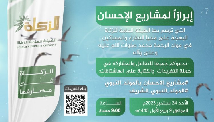 إبرازاً لمشاريع الإحسان التي ترسم بها الهيئة العامة للزكاة البهجة على محيا الفقراء والمساكين في مولد الرحمة محمد صلوات الله عليه وعلى وآله.