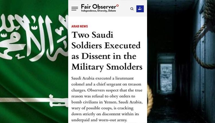 كشف موقع أمريكي عن سبب إقدام السلطات السعودية بإعدام طيارين اثنين من قواتها الجوية قبل أكثر من أسبوعين بتهمة الخيانة، حيث تتحدث مصادر في المعارضة السعودية إنهما أعدما بسبب رفضهما قصف أهداف مدنية في اليمن.
