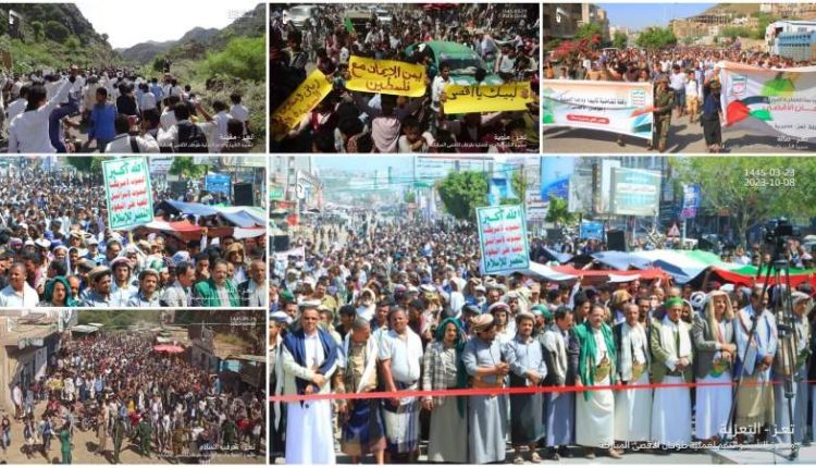 مسيرات حاشدة في سبع ساحات بتعز تأييدًا ودعمًا لعملية “طوفان الأقصى”