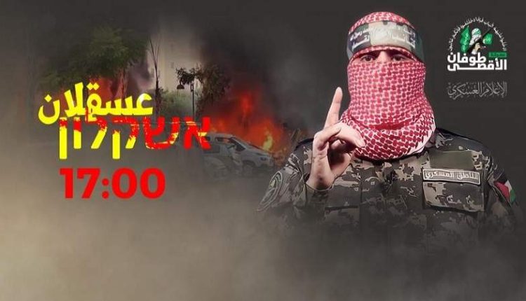 أمهل الناطق العسكري باسم كتائب القسام أبو عبيدة سكان مدينة عسقلان المحتلة بمغادرتها قبل الساعة الخامسة من مساء اليوم الثلاثاء.