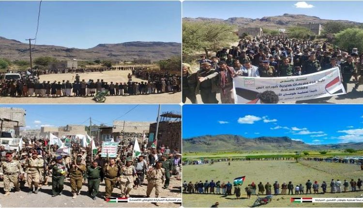 وخلال الوقفات، التي شارك فيها قيادات محلية وشخصيات اجتماعية، أكد المشاركون تأييدهم المطلق لأي قرار وخطوات يتخذها قائد الثورة عبدالملك بدر الدين الحوثي لمساندة الشعب الفلسطيني ودعم مقاومته بالتنسيق مع محور المقاومة.