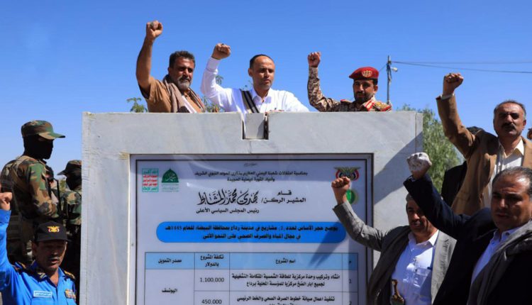 افتتح فخامة المشير الركن مهدي المشاط رئيس المجلس السياسي الأعلى ووضع حجر الأساس اليوم الأحد ، لأربعة مشاريع خدمية في مدينة رداع بمحافظة البيضاء بتكلفة اثنين مليار و214 مليون ريال.