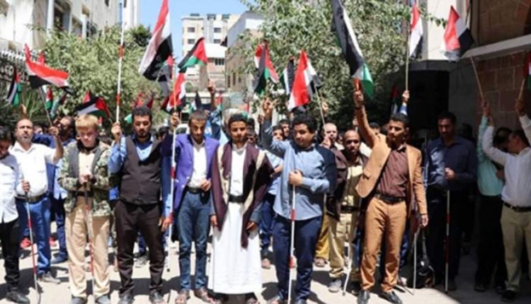 المكفوفين في صنعاء ينظمون وقفة تضامنا مع فلسطين