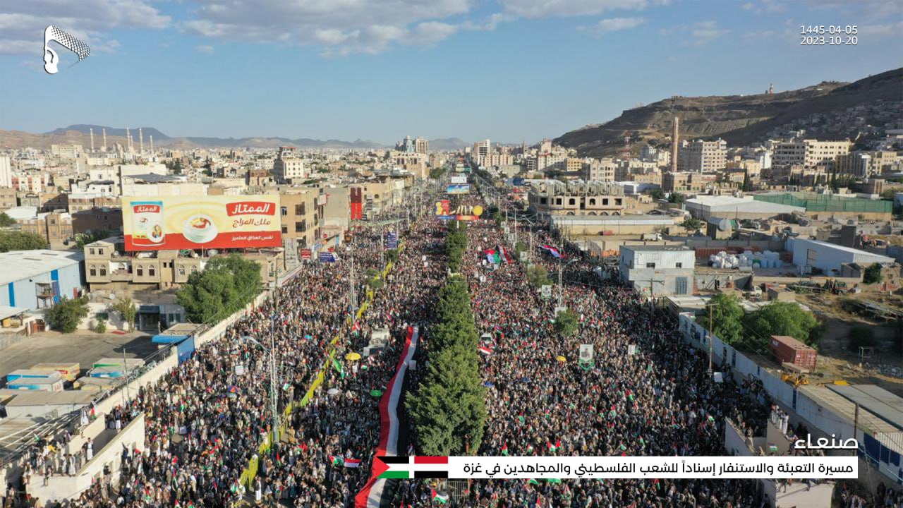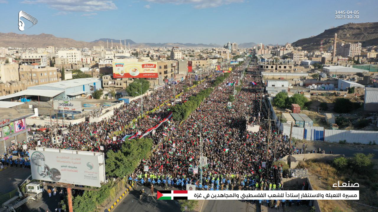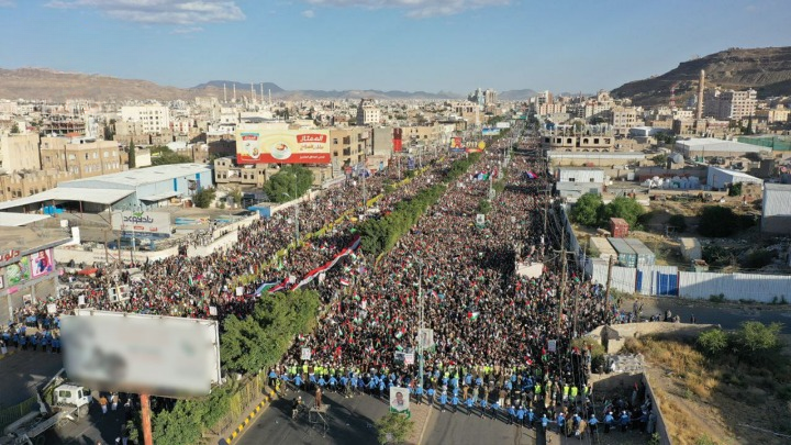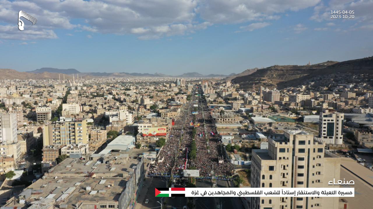 خرجت بالعاصمة صنعاء اليوم، مسيرة مليونية هي الأكبر على مستوى المنطقة والعالم، في جمعة التعبئة والاستنفار إسنادا للشعب الفلسطيني وللمجاهدين في غزة.