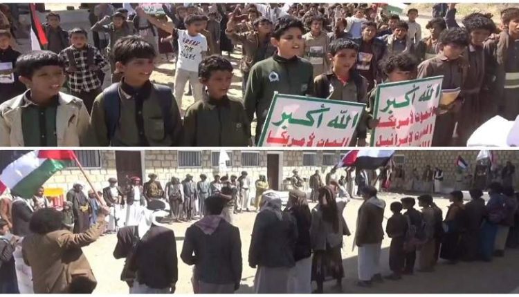 مسيرة طلابية ووقفتان احتجاجيتان بمديريتي ماهلية وصرواح تضامناً مع أطفال فلسطين