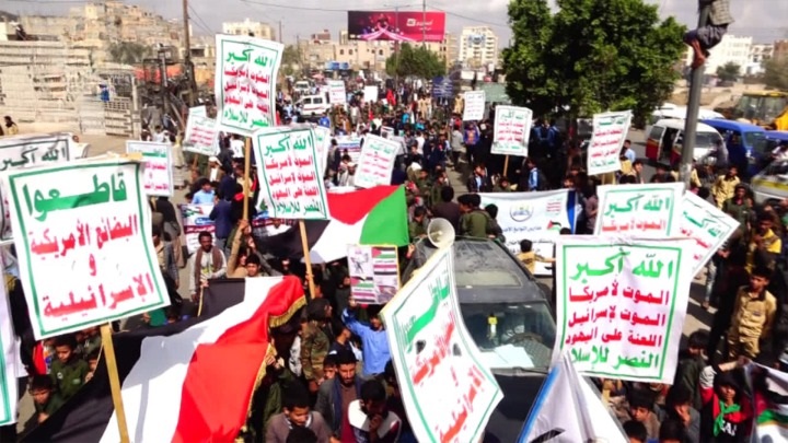 مسيرة طلابية في همدان بصنعاء تضامناً مع الشعب الفلسطيني