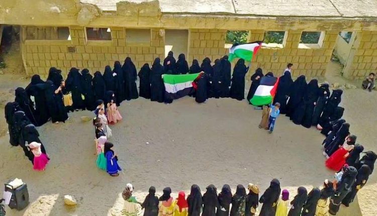 نظمت الهيئة النسائية العامة في مديرية شدا الحدودية بمحافظة صعدة، اليوم ، وقفة احتجاجية تنديداً بمجازر العدو الصهيوني الإسرائيلي في غزة، وتضامنا مع الشعب الفلسطيني والمجاهدين في غزة.