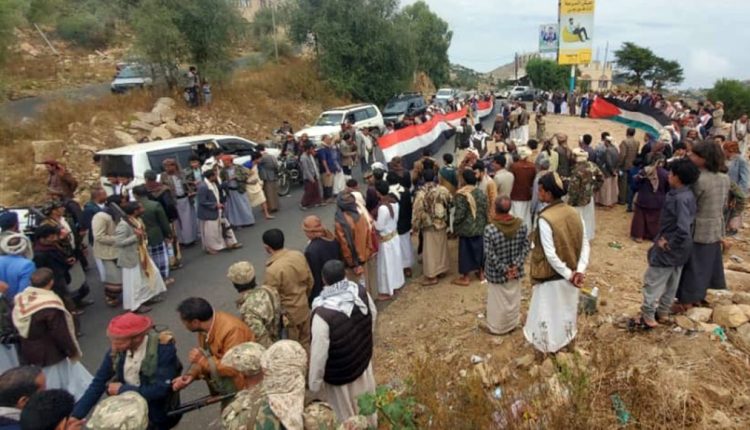 وقفة احتجاجية لأبناء مدينة المحويت تنديداً بجرائم العدو الصهيوني في غزة