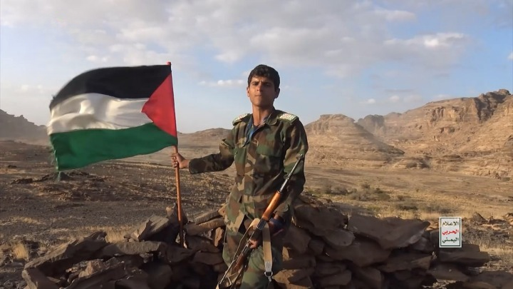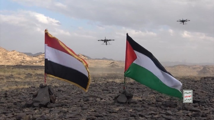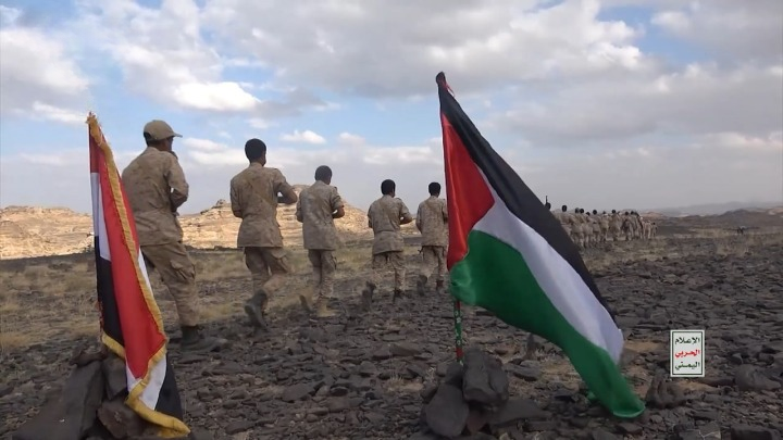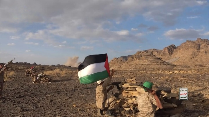 وتم خلال المناورة العسكرية، رفع العلمين اليمني والفلسطيني، للتأكيد على ارتباط قضية ومظلومية الشعبين اليمني والفلسطيني وتعرضهما لعدوان وحصار من قبل التحالف الأمريكي الصهيوني وأدواتهما السعودية والإمارات بدعم غربي، وارتكابهم لمجازر يندى لها جبين الإنسانية في اليمن وفلسطين.