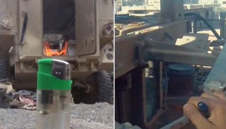 نشر الناطق الرسمي لأنصار الله ورئيس الوفد الوطني اليمني محمد عبدالسلام، اليوم ، صورتين لإحراق المدرعات الأمريكية والصهيونية بالولاعات، الصورة الأولى من اليمن والثانية من قطاع غزة.